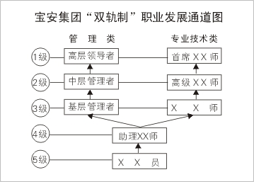 宝安集团实施任职资格管理制度,建立双轨制职业发展通道(管理通道和专业技术通道),为员工发展提供机会。